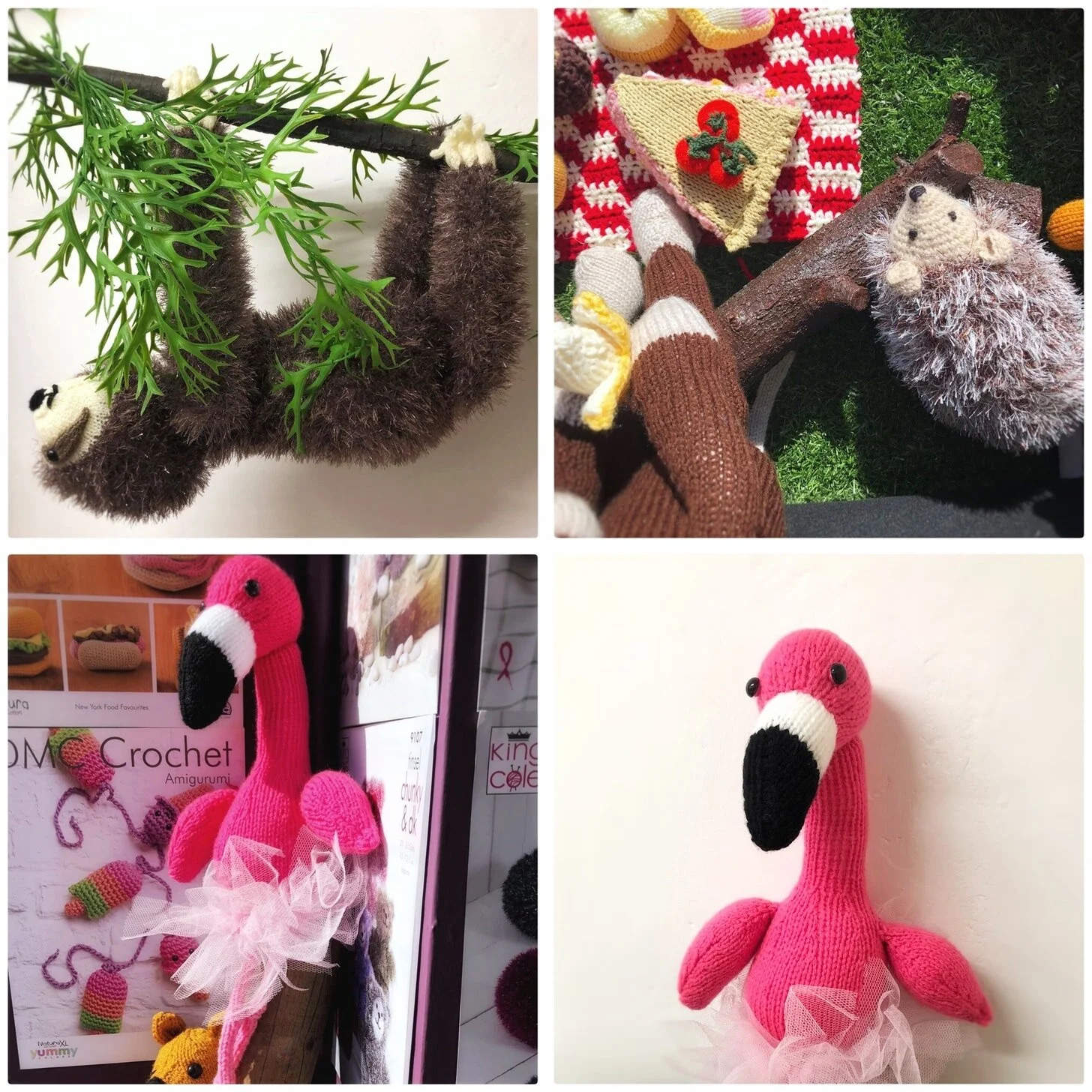 Another handmade character who has been stealing the show in this window is Fiona the Flamingo. This is a pattern by Amanda Berry which we got from Ravelry (click here to take a look). Fiona is knitted in Hayfield Bonus DK, a classic acrylic yarn that’s perfect for making toys like this.